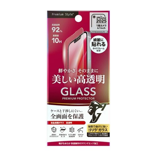 高い透明度で強靭なゴリラガラスを採用、ダブルストロング製法のiPhone 16e/14/13/13Pro兼用 液晶全画面保護ガラス。高透明。 |