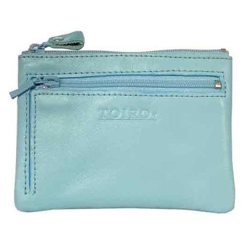 鮮やかな色に染めた本革のファスナータイプの小銭入れ |