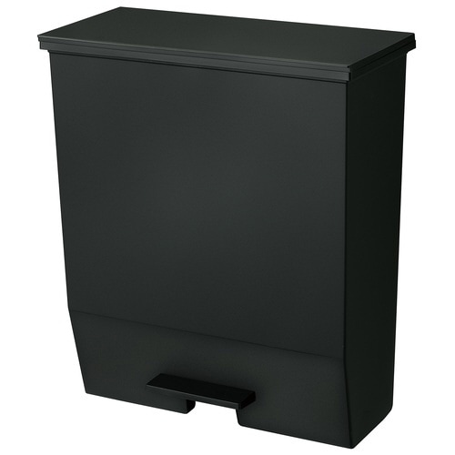 スペースの無い場所にも置ける。通路を妨げない奥行22.5cmの薄型設計。手を使わずフタが開閉できるペダル式。ポリ袋止め付。移動に便利なキャスター付。抗菌防汚加工。 |