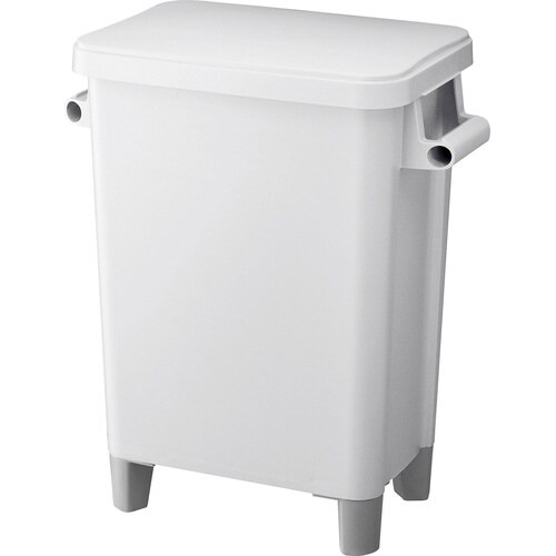 抗菌と防汚のダブル加工で衛生的に使用できます。排水栓付。容器持ち上げ作業を補助する中空グリップ。フタをハンドルに掛けて保持できます。高さのある脚により排水清掃がラクに行えます。45L用ポリ袋対応。 |