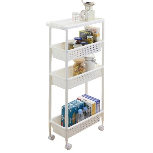 気になるスペースにピッタリ収まるスリムタイプのワゴンです。中に何を収納したかが見やすく、必要なものがサッと取り出せます。移動に便利なキャスター付きです。シンプルなので使う場所を選びません。 |