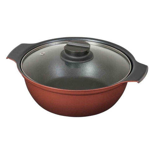 内側にフッ素加工をほどこした卓上鍋です。 こびりつきにくくお手入れが簡単です。 調理中に中の様子を確認しやすいガラス蓋付きです。 |