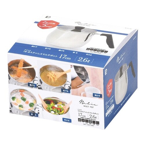 1台で5通りの調理ができる万能マルチポットです。 2から3人分の料理にちょうどいいサイズです。 丈夫で錆びにくい18−8ステンレス製です。 ソースの盛り付けやお茶を入れるのに便利な注ぎ口付きです。 |