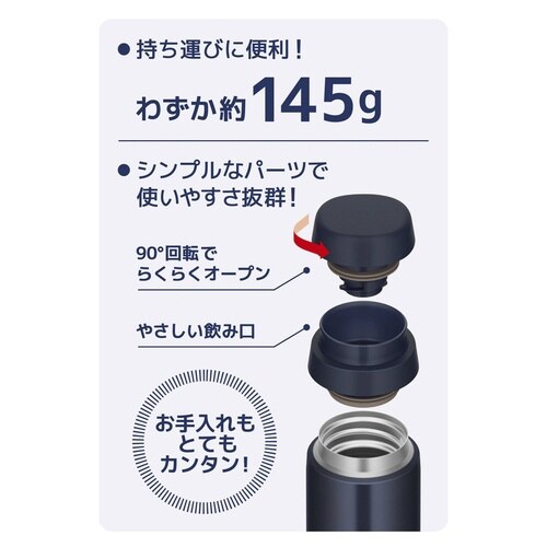わずか90度で蓋が開く開閉時の煩わしさを軽減したケータイマグです。 魔法びん構造なので高い保温・保冷効カがあり、結露せず、漏れの心配もありません。 |