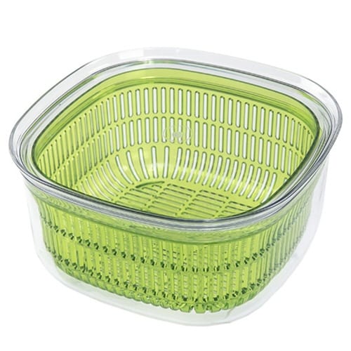 野菜や果物を洗って水を切りそのまま保存もできる、フタ付きのざる・ボウルです。 冷蔵庫からサッと必要な時に必要なだけ野菜を使えます。 保存中もしっかり水切りしてるので、野菜の鮮度を保てます。 |