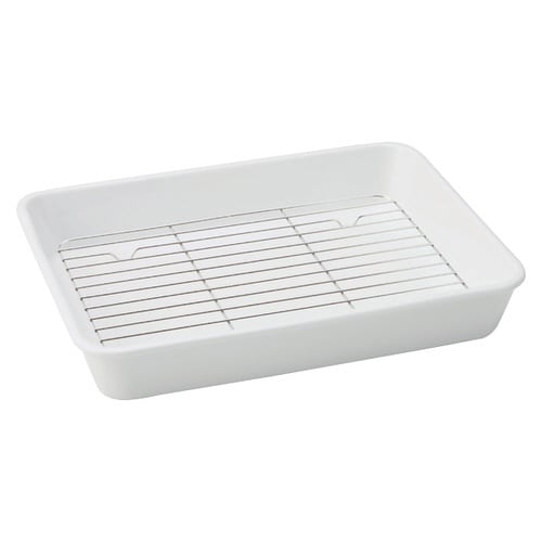 スクエアタイプのお皿としても使える磁器製の調理バットです。 ステンレスの網付きなので揚げ物の油切りができます。 オーブン調理ができる器なので、グラタン皿やラザニア皿としても使用できます。 |