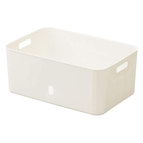 ポリエチレン素材のやわらかい収納ボックスです。 片手でも引き出しやすいように指を引っ掛ける抜穴が空いています。 カラーボックスに様々な大きさを組み合わせて収納できます。 |