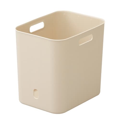 ポリエチレン素材のやわらかい収納ボックスです。 片手でも引き出しやすいように指を引っ掛ける抜穴が空いています。 カラーボックスに様々な大きさを組み合わせて収納できます。 |