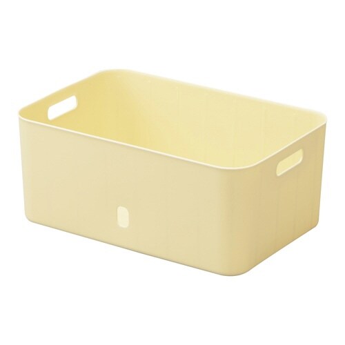ポリエチレン素材のやわらかい収納ボックスです。 片手でも引き出しやすいように指を引っ掛ける抜穴が空いています。 カラーボックスに様々な大きさを組み合わせて収納できます。 |