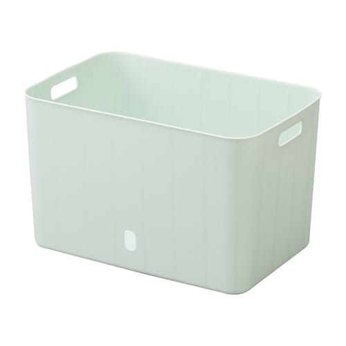 ポリエチレン素材のやわらかい収納ボックスです。 片手でも引き出しやすいように指を引っ掛ける抜穴が空いています。 カラーボックスに様々な大きさを組み合わせて収納できます。 |