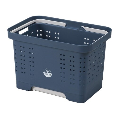 ランドリーバスケット 折りたたみ ディープブルー×2