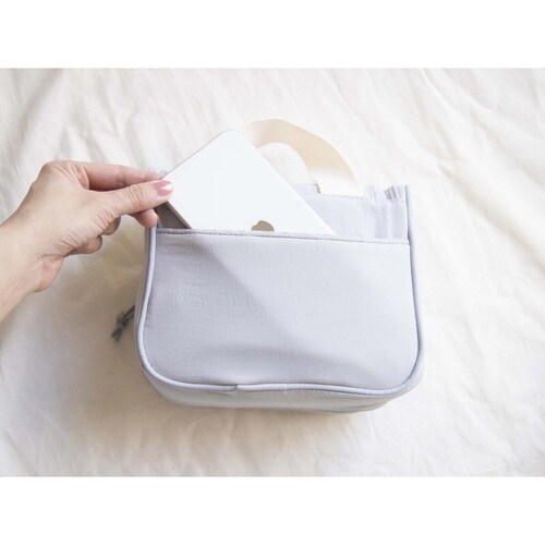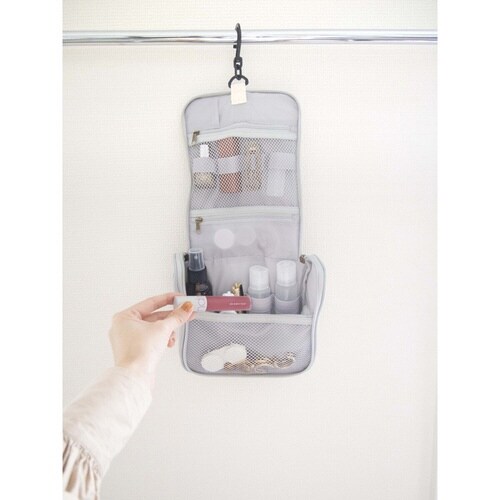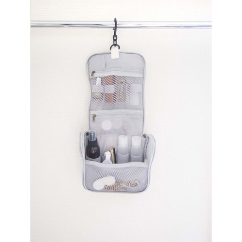 軽くてシンプルなデザインのトラベルポーチです。 スマホより軽量なので、持ち運びやすいです。 フックで吊り下げて使えるので、化粧品をすぐに手に取れて便利です。 |
