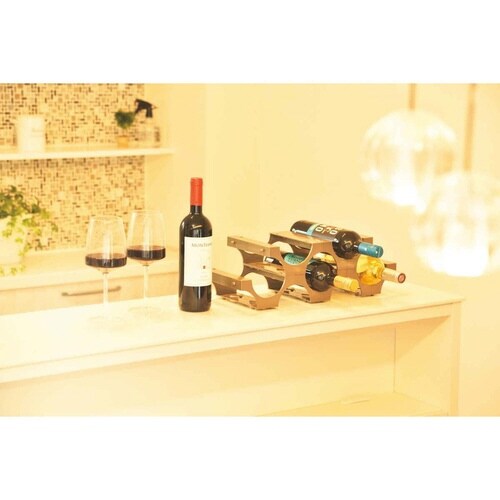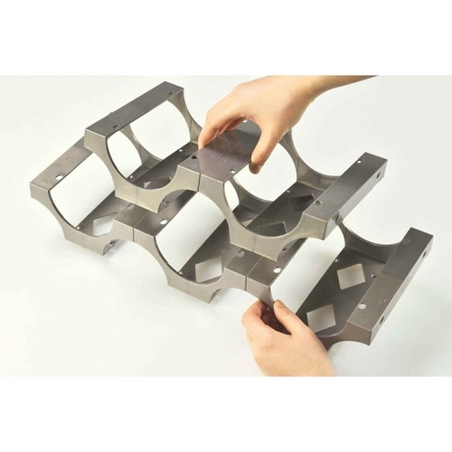 5つのパーツを組み合わせて好きな形にできるボトルスタンドです。 置く場所に合わせて数や形を変えて使えます。 軽くて扱いやすい樹脂製なので、ボトルを傷つけにくいです。 |