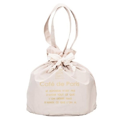 Cafe de parisシリーズの巾着にもバッグにもなるお洒落なランチ巾着バッグです。 底にマチがあるタイプのランチバッグなので、安定してお弁当を持ち歩けます。 |
