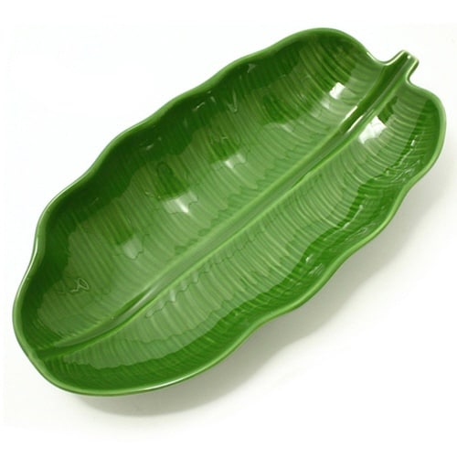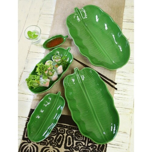 バナナの葉をかたどった陶器のお皿です。 ナシゴレン、ロコモコ、サラダなどの盛り付けにちょうどいいサイズです。 電子レンジ・食洗機対応です。 |