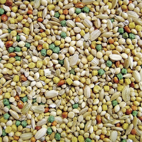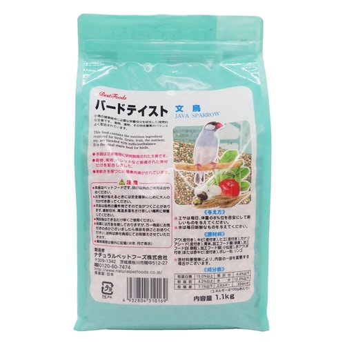 文鳥が大好きな穀物と、タンパク質、カルシウム、ビタミンを補う三種類の加工フードをブレンドした文鳥専用食です。文鳥が健康でいるために必要な栄養をバランスよく配合しました。 |