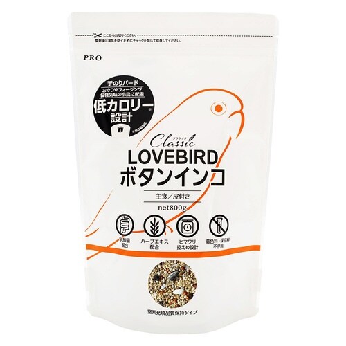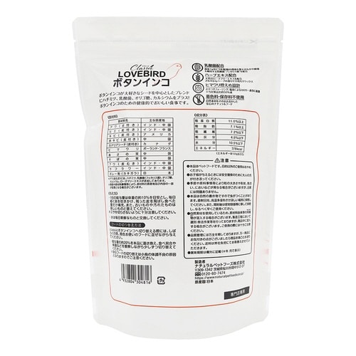 ボタンインコが大好きなシードを中心としたブレンドにハチミツ、乳酸菌、オリゴ糖、カルシウムをプラス! |