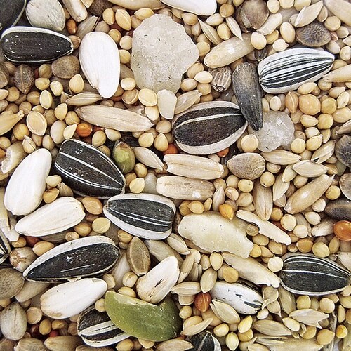 アワ、ヒマワリ、麻の実を中心にボタンインコの好きな素材を厳選し、配合しました。 |