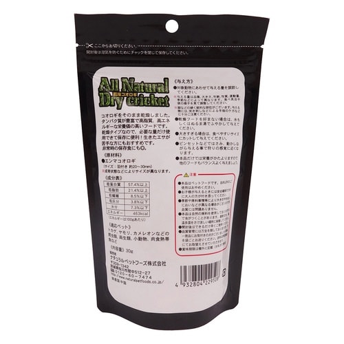 コオロギをそのまま乾燥しました。たんぱく質が豊富で高脂質、高エネルギーな栄養価の高いフード。 |