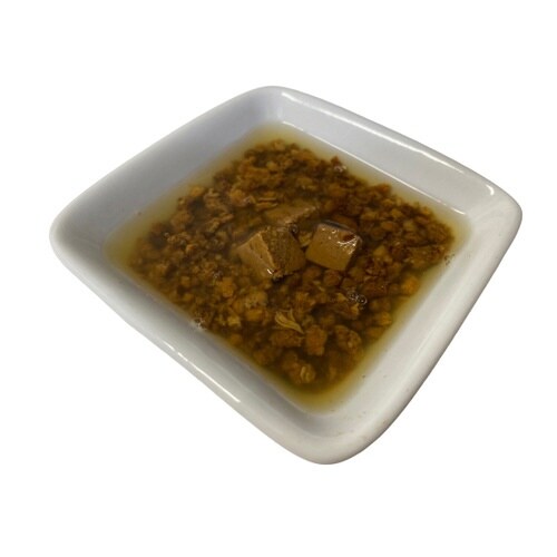 新しいもの好きな(ネオフィリア)猫ちゃんのために、白身と血合いをそぼろ状にしました。