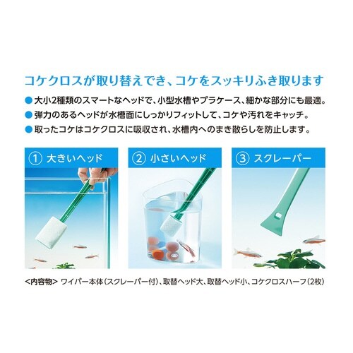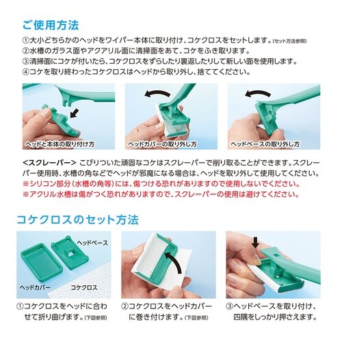 水槽ガラス面のコケ除去ワイパーで柔らかいコケとスクレーパーでガンコなコケにも対応