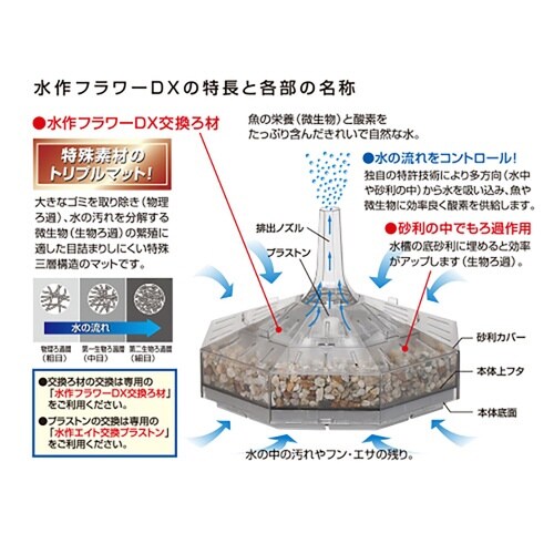 本体をフラットに設計、水槽内で目立たず高いろ過能力を発揮