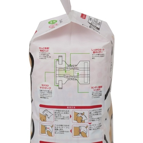 表面材:ポリプロピレン不織材 吸収材:吸収紙・綿状パルプ・高分子吸収材 防水材:ポリエチレンフィルム 止着材:ポリプロピレンテープ 伸縮材:ポリウレタン 結合材 ※一部は外装記載