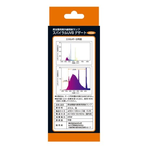 爬虫類専用蛍光型紫外線ランプ、主に砂漠に生息し強い紫外線量を必要とする生体用