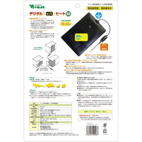 やわらかな素材でケースの底や側面に貼り付けしやすい、ケージ内に効率よく温度を伝えるシートヒーター。 |