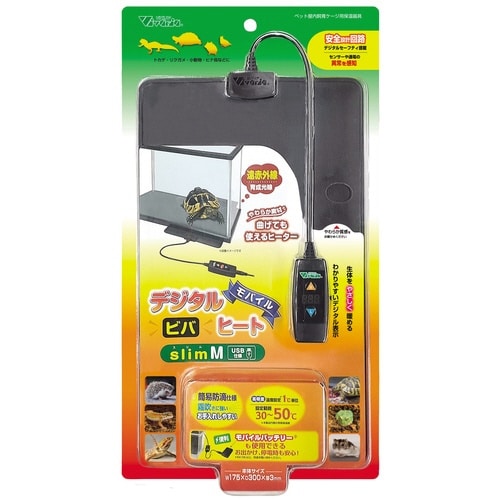 飼育ケージ外側の、底やガラス面に貼りつけて使えるやわらか素材の薄型ヒーター。温度設定可能。 |