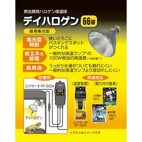 爬虫類用のハロゲン保温球。狭いところにバスキングスポットが作れる、昼用の集光型照射タイプ。