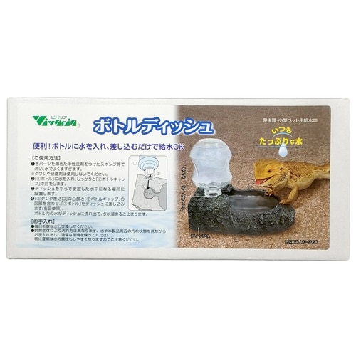爬虫類用の給水皿に便利!ボトルに水を入れ、差し込むだけで給水OK。いつもたっぷりな水を供給。 |