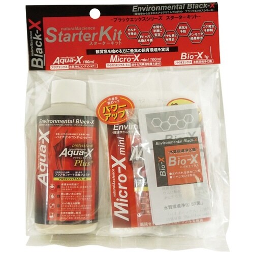 飼育初期に必要なソフト3点、水質調整剤・ろ過材・バクテリア剤がセットになったキット |