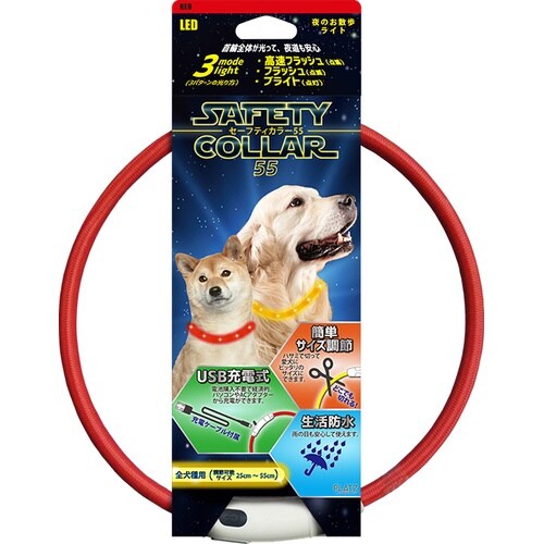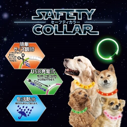 経済的なUSB充電タイプ。首輪全体が光ります。