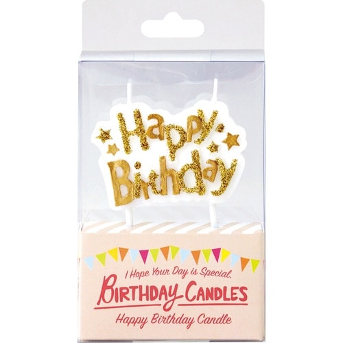 ハッピーバースデーのゴールド文字キャンドル |
