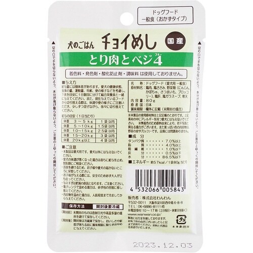 わんわん チョイめし とり肉とベジ4 80g 9281-0532