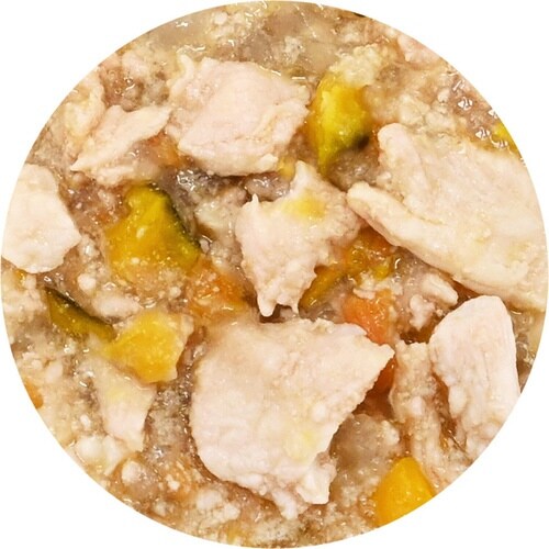 鶏肉、鶏ささみ、野菜類(にんじん、かぼちゃ、さつまいも、ブロッコリー)、鶏肝、鶏ガラスープ、寒天 ※一部は外装記載