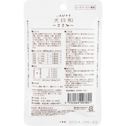 わんわん 犬日和レトルト ささみ 80g 9281-0778