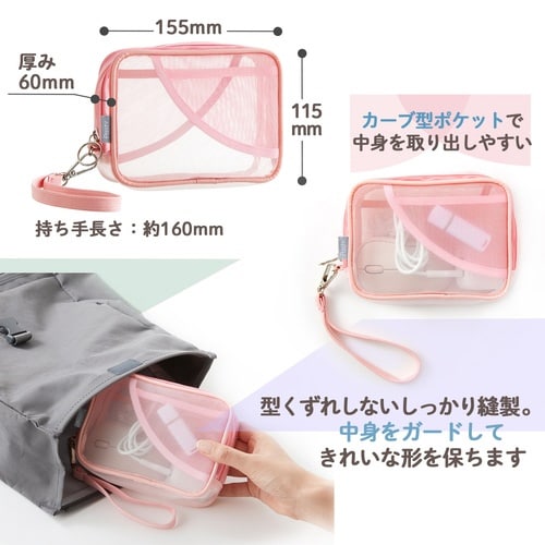 Pastyの形状を活かした小物ポケットで、取り出しやすく収納しやすいメッシュ素材の透けるガジェットポーチ