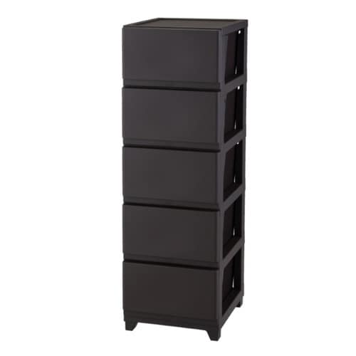 光沢を抑えたシックな質感と色合いのインテリアチェストです。 引き出しは5段あります。 引き出し底面には、引き出し抜け落ち防止ストッパーが付いています。 |