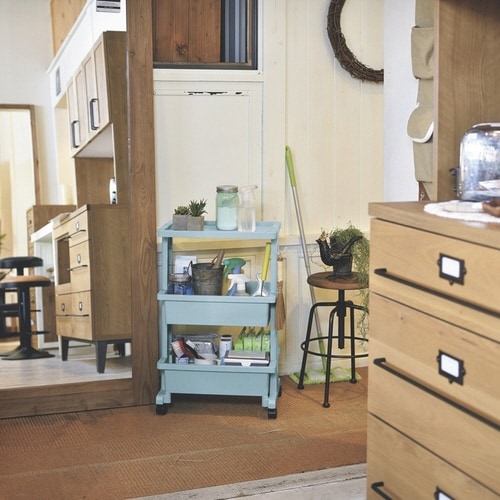 好きな場所にいつでも気軽に持ってこられるテーブルワゴンです。 ランドリー・リビング・子ども部屋とマルチな場所で活躍します。 天板はテーブルとして使っていただけます。 |
