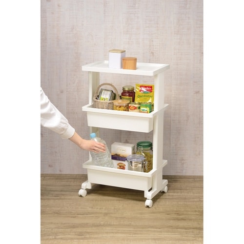 好きな場所にいつでも気軽に持ってこられるテーブルワゴンです。 ランドリー・リビング・子ども部屋とマルチな場所で活躍します。 取り出し口が広く、背の高い収納物や2Lペットボトルの出し入れがしやすいです。 |