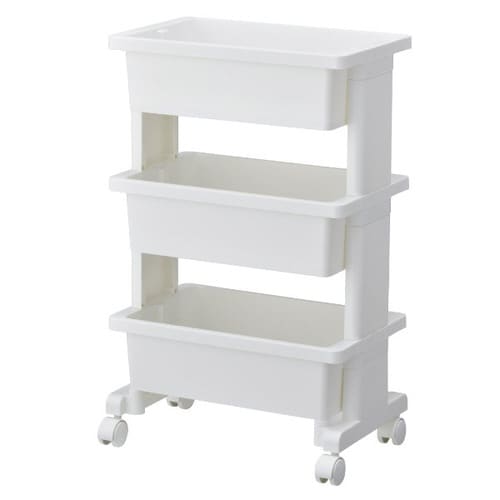 手軽に移動できるワゴンタイプの収納です。 デスクやカウンターの下に入る小さめサイズです。 キャスター付きで移動もラクラクです。 各パーツを差し込んでいくだけで簡単に組み立てができます。 |