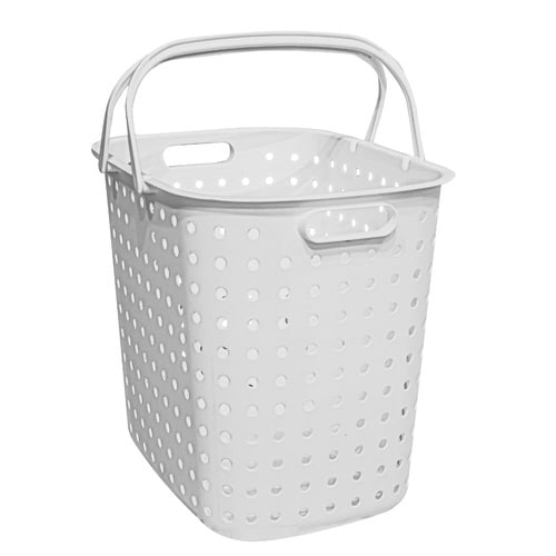 目隠し効果と通気性を考えたデザインのランドリーバスケットです。 ハンドルと使いやすい持ち手が付いているので、持ち運びに便利です。 |