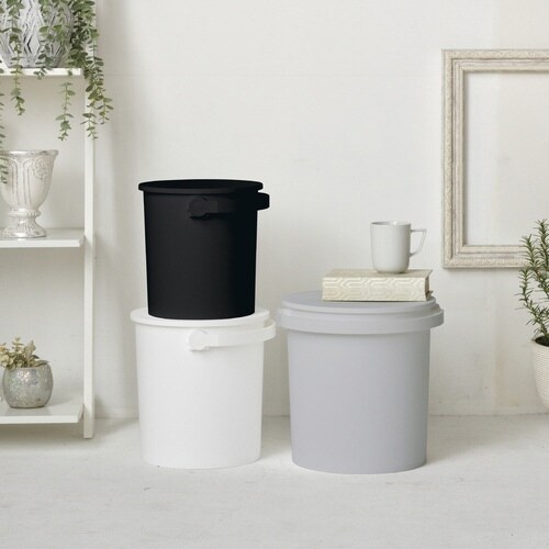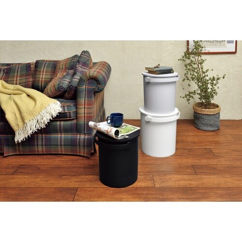 耐荷重150kgの座れるバケツです。 見えるところに置いていても景観を損なわないシンプルなデザインです。 さまざまな形やサイズの物を隠して収納できます。 |