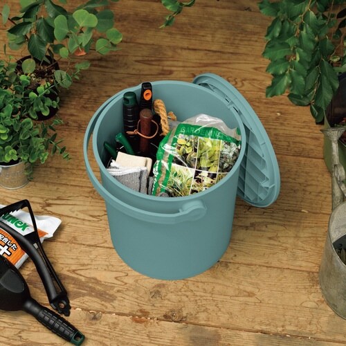 耐荷重150kgの座れるバケツです。 見えるところに置いていても景観を損なわないシンプルなデザインです。 さまざまな形やサイズの物を隠して収納できます。 |