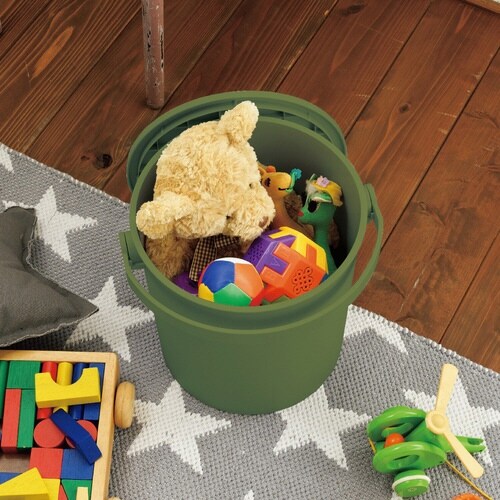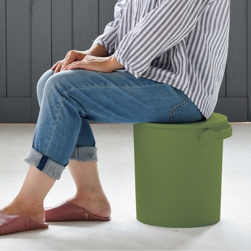 耐荷重150kgの座れるバケツです。 見えるところに置いていても景観を損なわないシンプルなデザインです。 さまざまな形やサイズの物を隠して収納できます。 |