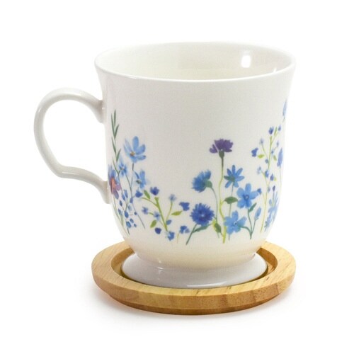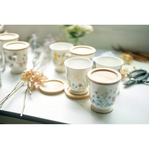 花柄が素敵な木蓋付きイニシャルマグカップです。 ゆったりティータイムをお楽しみいただけるたっぷりサイズの350mlです。 蓋付きで埃の侵入や温かい飲み物が冷めるのを防ぐことができます。 |