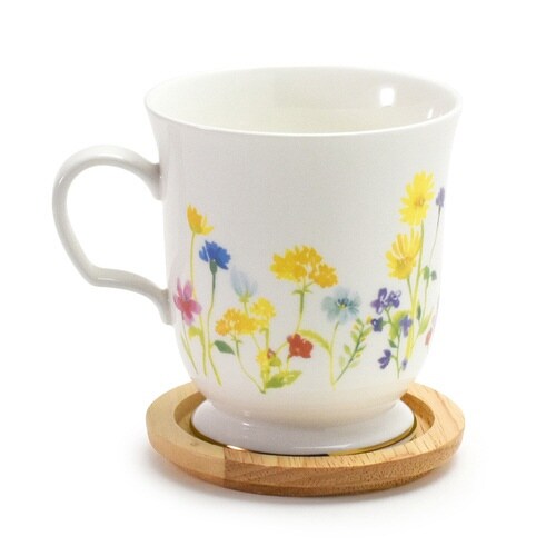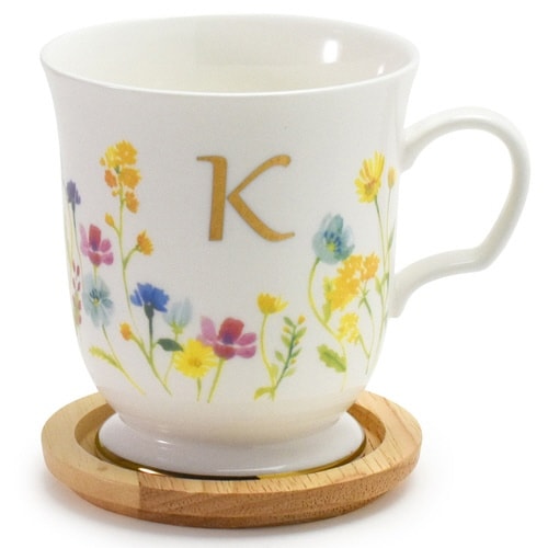 花柄が素敵な木蓋付きイニシャルマグカップです。 ゆったりティータイムをお楽しみいただけるたっぷりサイズの350mlです。 蓋付きで埃の侵入や温かい飲み物が冷めるのを防ぐことができます。 |