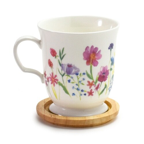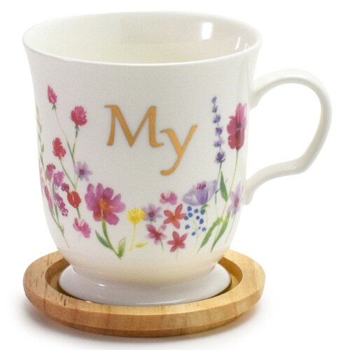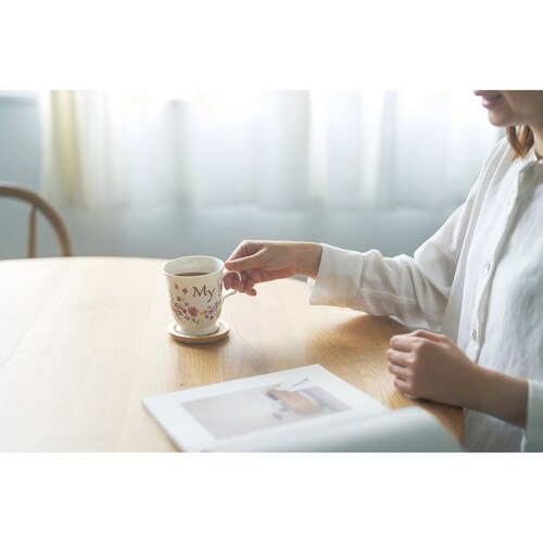 花柄が素敵な木蓋付きイニシャルマグカップです。 ゆったりティータイムをお楽しみいただけるたっぷりサイズの350mlです。 蓋付きで埃の侵入や温かい飲み物が冷めるのを防ぐことができます。 |